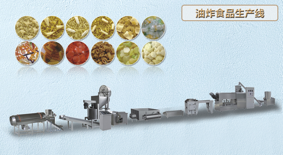 膨化小食品生产线 夹心米果面包片生产线 玉米片谷物生产线 营养米粉生产线 人造米生产线 大豆花生蛋白生产线 粟米条奇多生产线 油炸食品生产线 锅巴沙拉条生产线 燕麦巧克力生产线 妙脆角三角片生产线